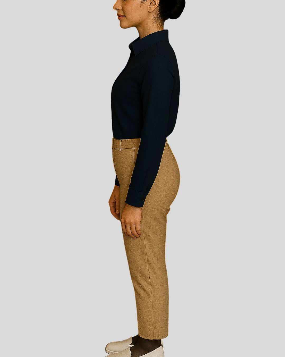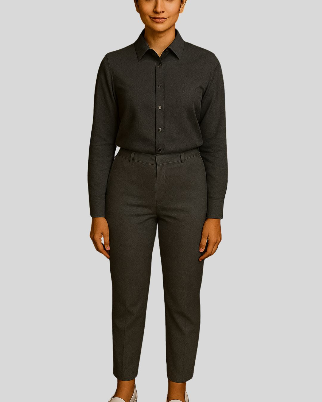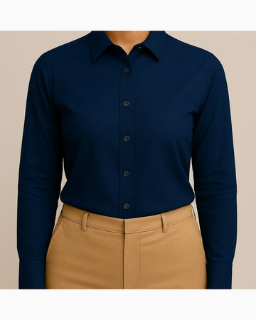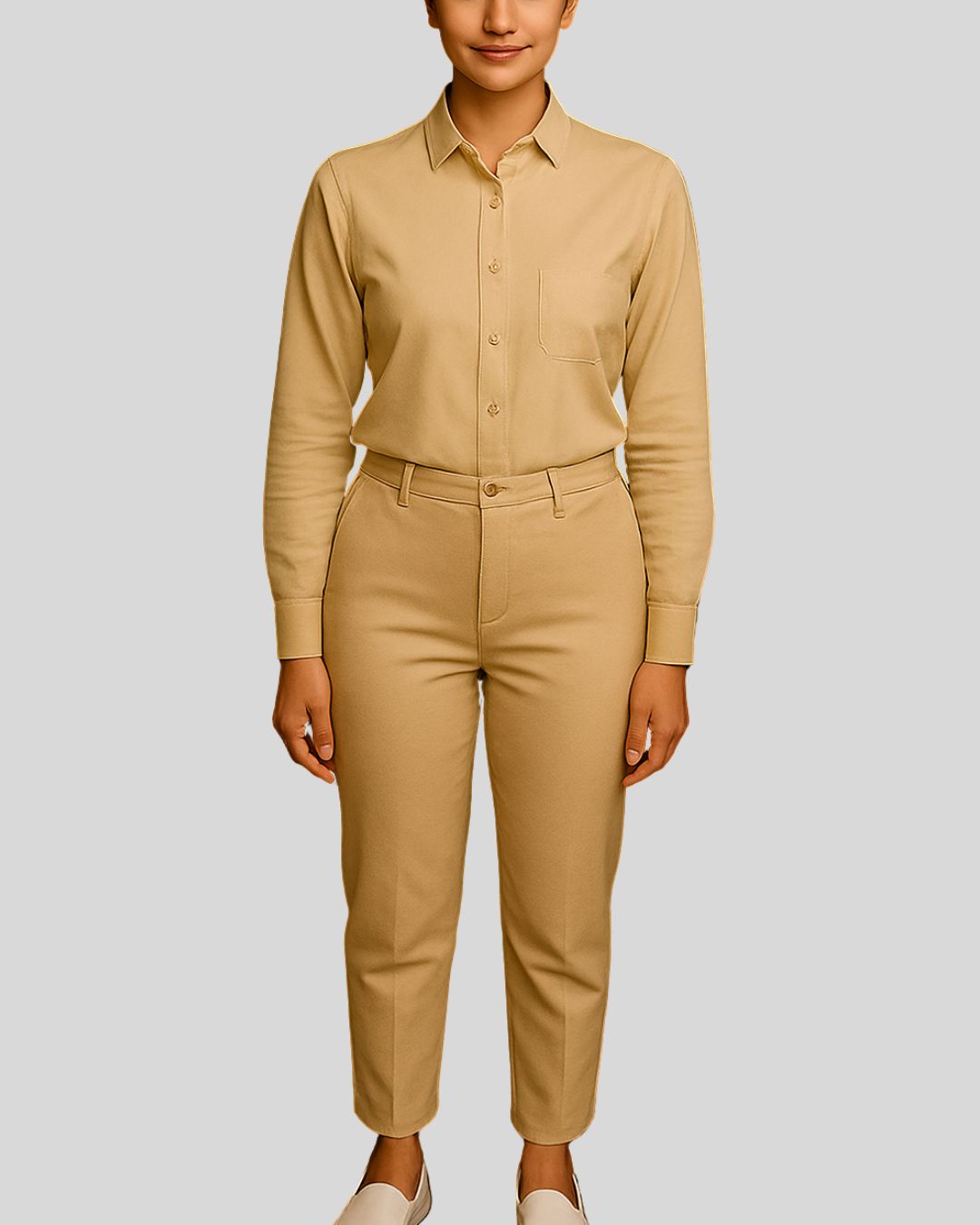 Tailored shirt with a structured pointed collar, long sleeves, and a neat button-up front, paired with slim bottoms. Design is wrinkle-free for a sharp and professional appearance.