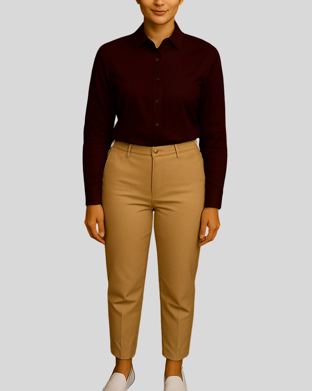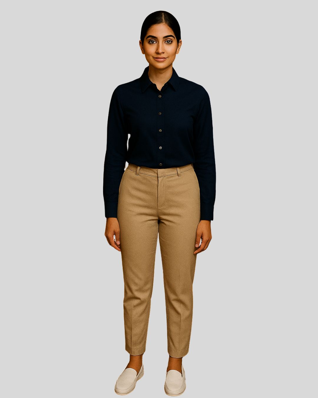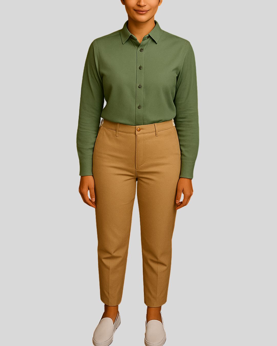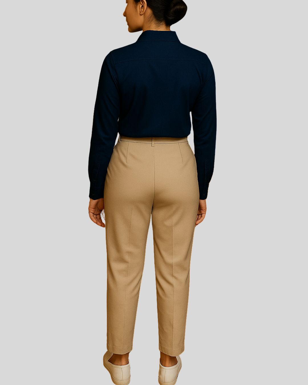 Tailored shirt with a structured pointed collar, long sleeves, and a neat button-up front, paired with slim bottoms. Design is wrinkle-free for a sharp and professional appearance.