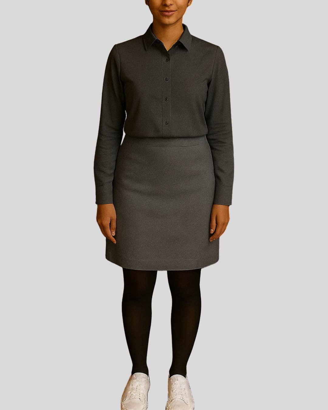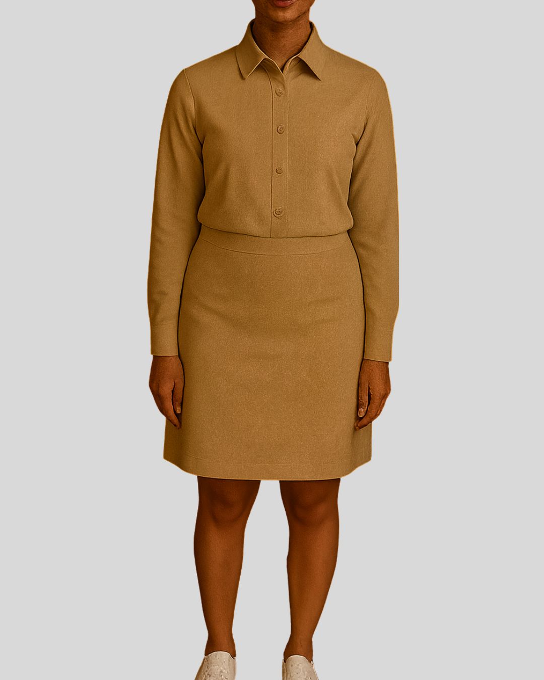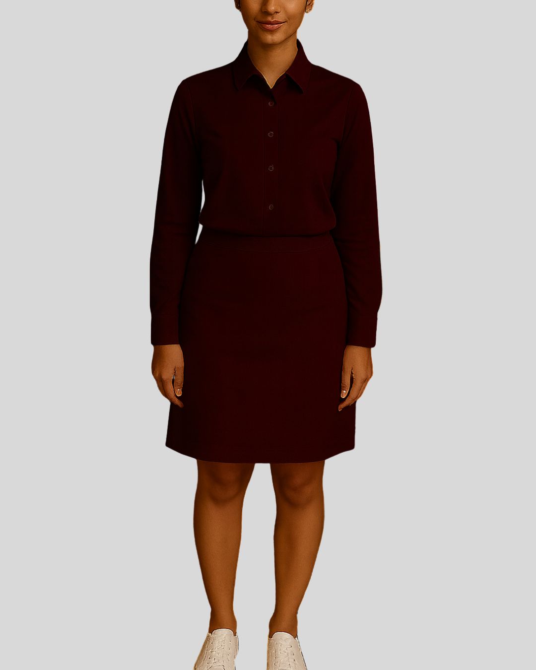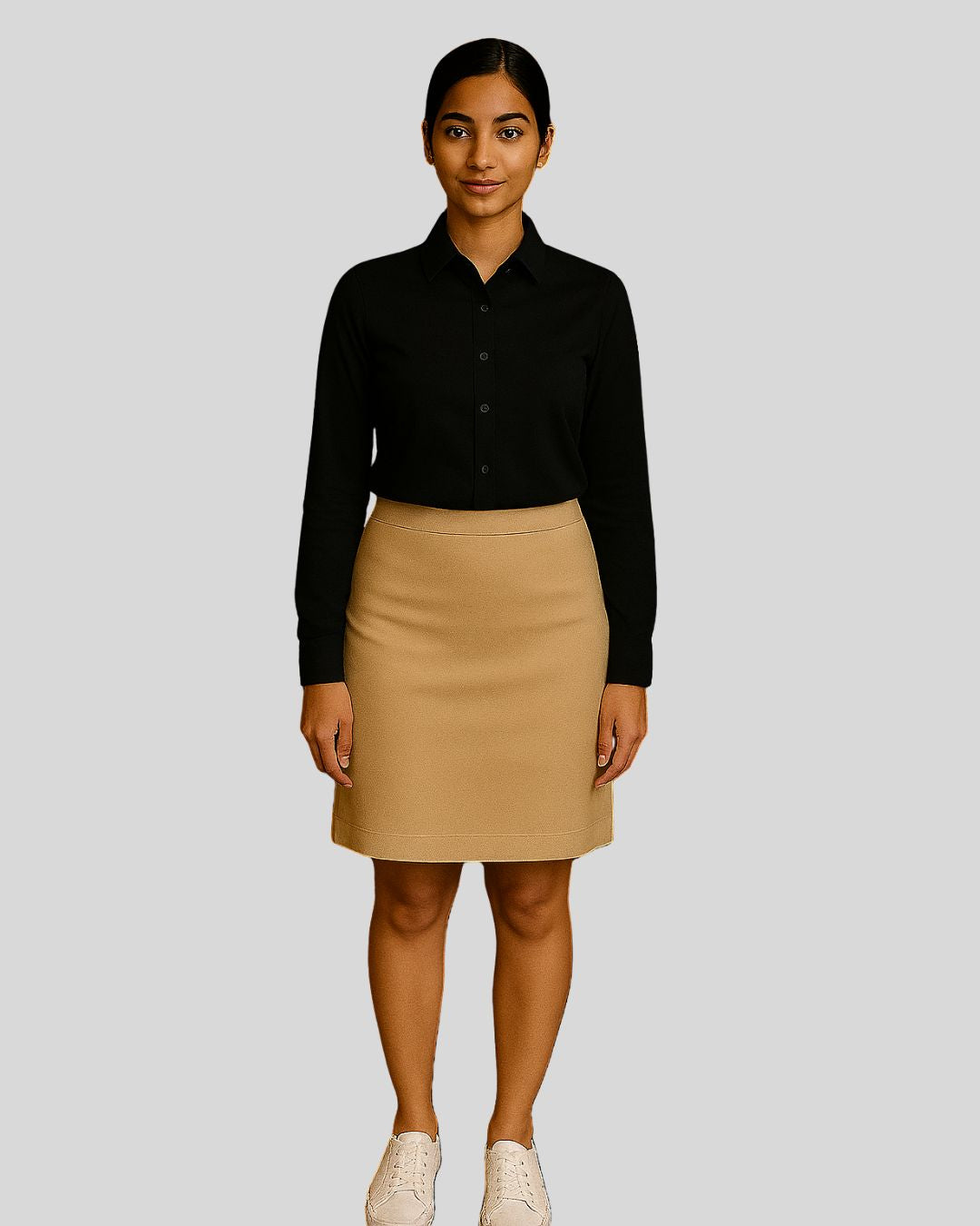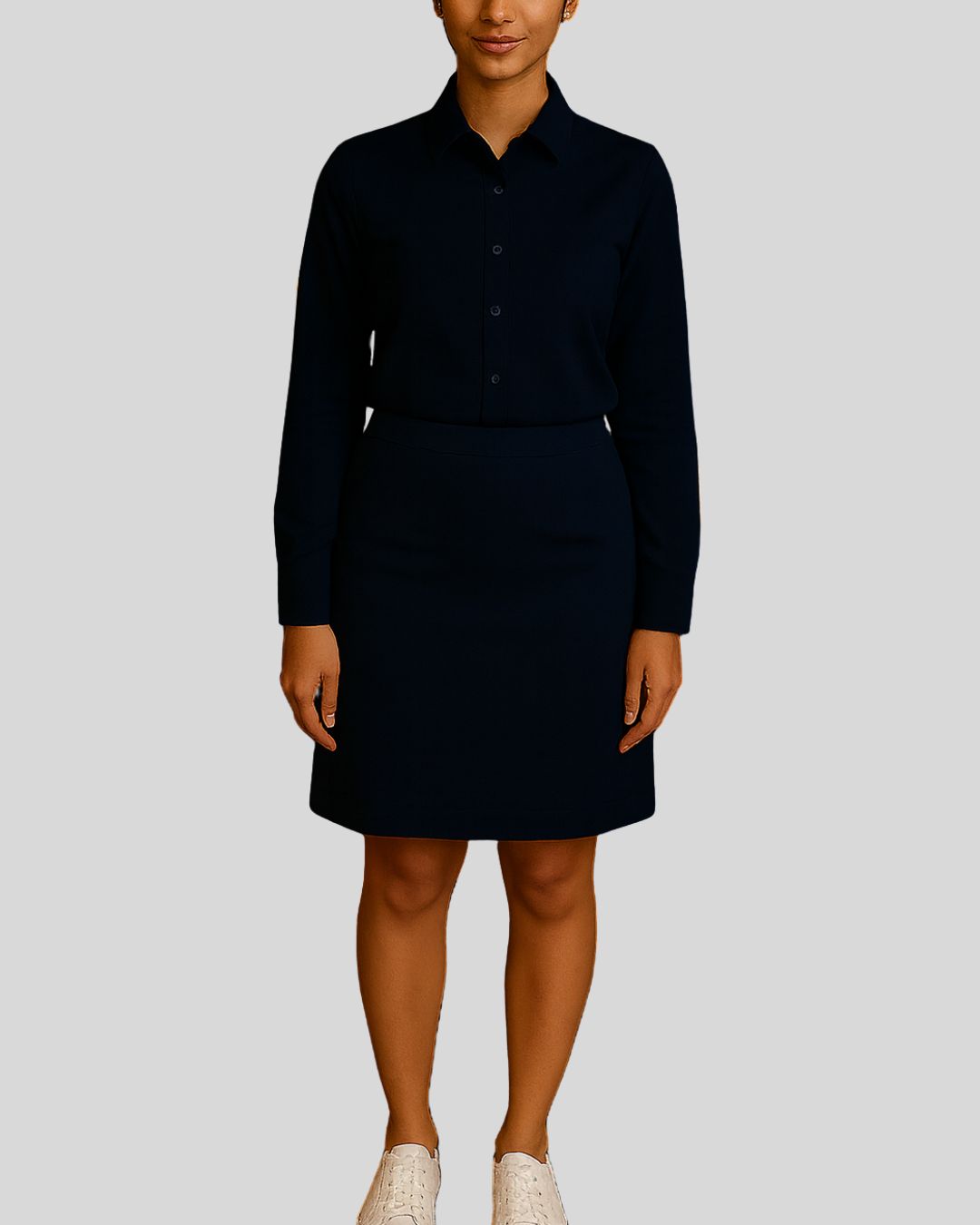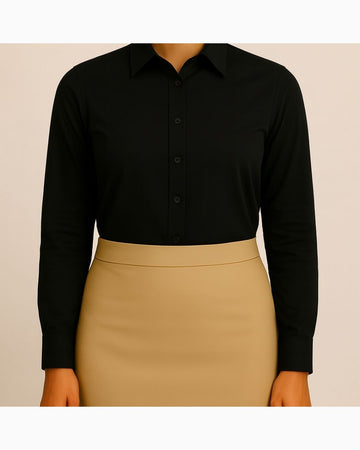 Refined shirt with a classic pointed collar and full sleeves, styled with a knee-length pencil skirt. Design is wrinkle-free and maintains a crisp, polished look throughout the day.